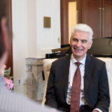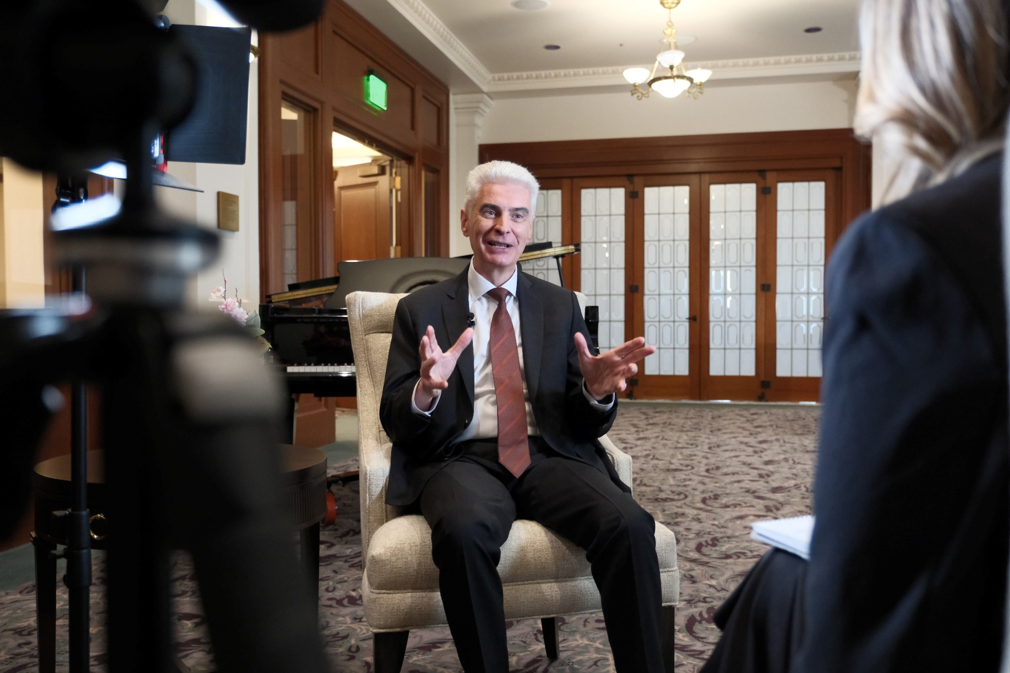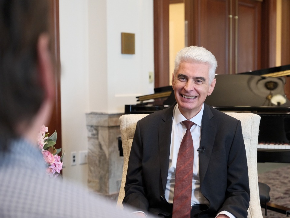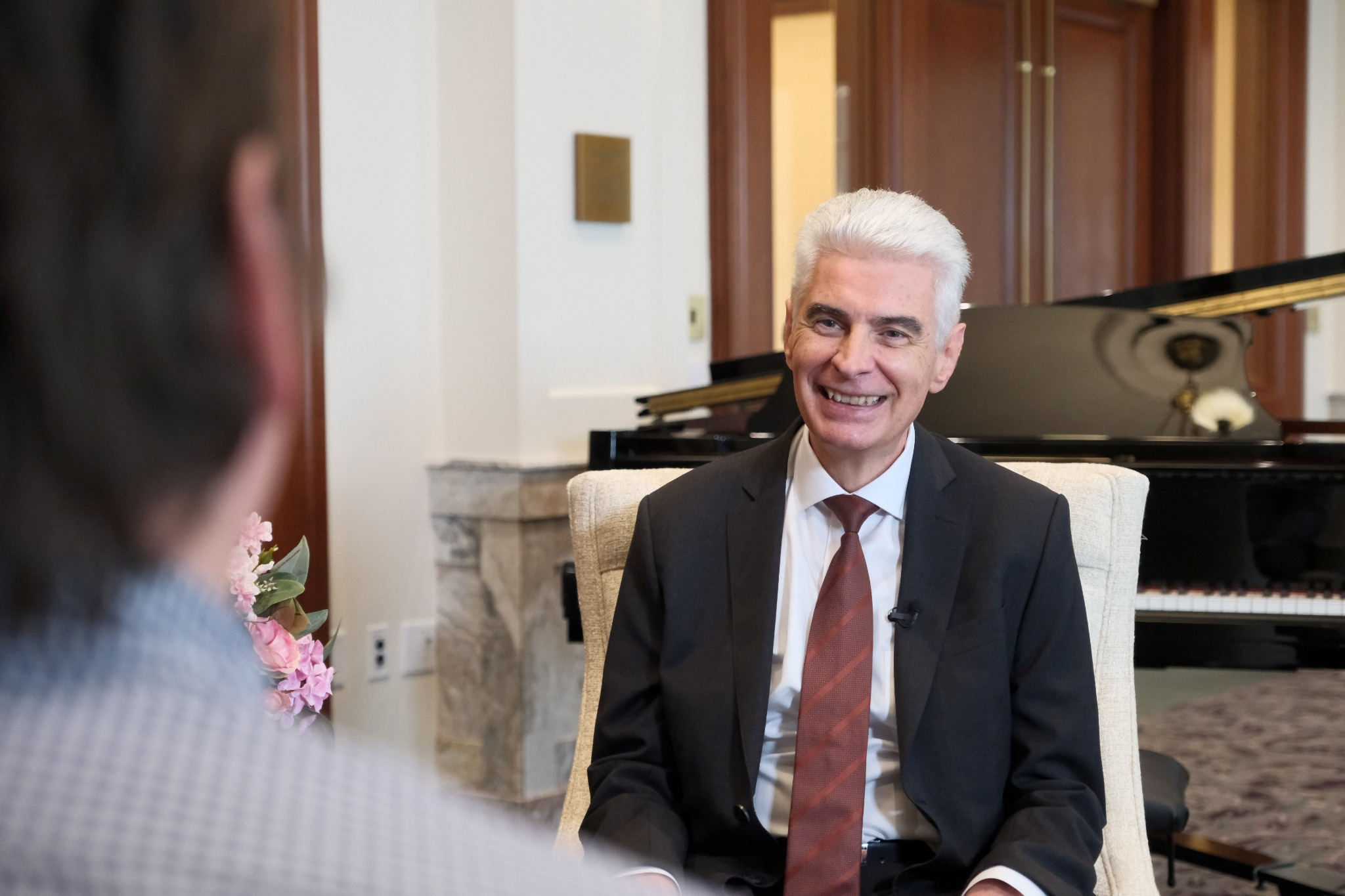 Le vendredi 7 novembre 2025, les journalistes ont eu l’occasion de parler pour la première fois avec Gérald Caussé, le nouveau membre du Collège des douze apôtres, dans l’enceinte du Joseph Smith Memorial Building, à Temple Square.