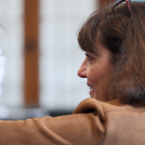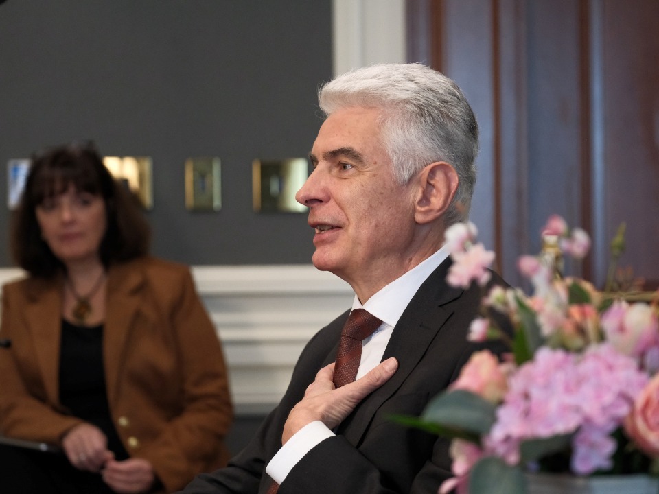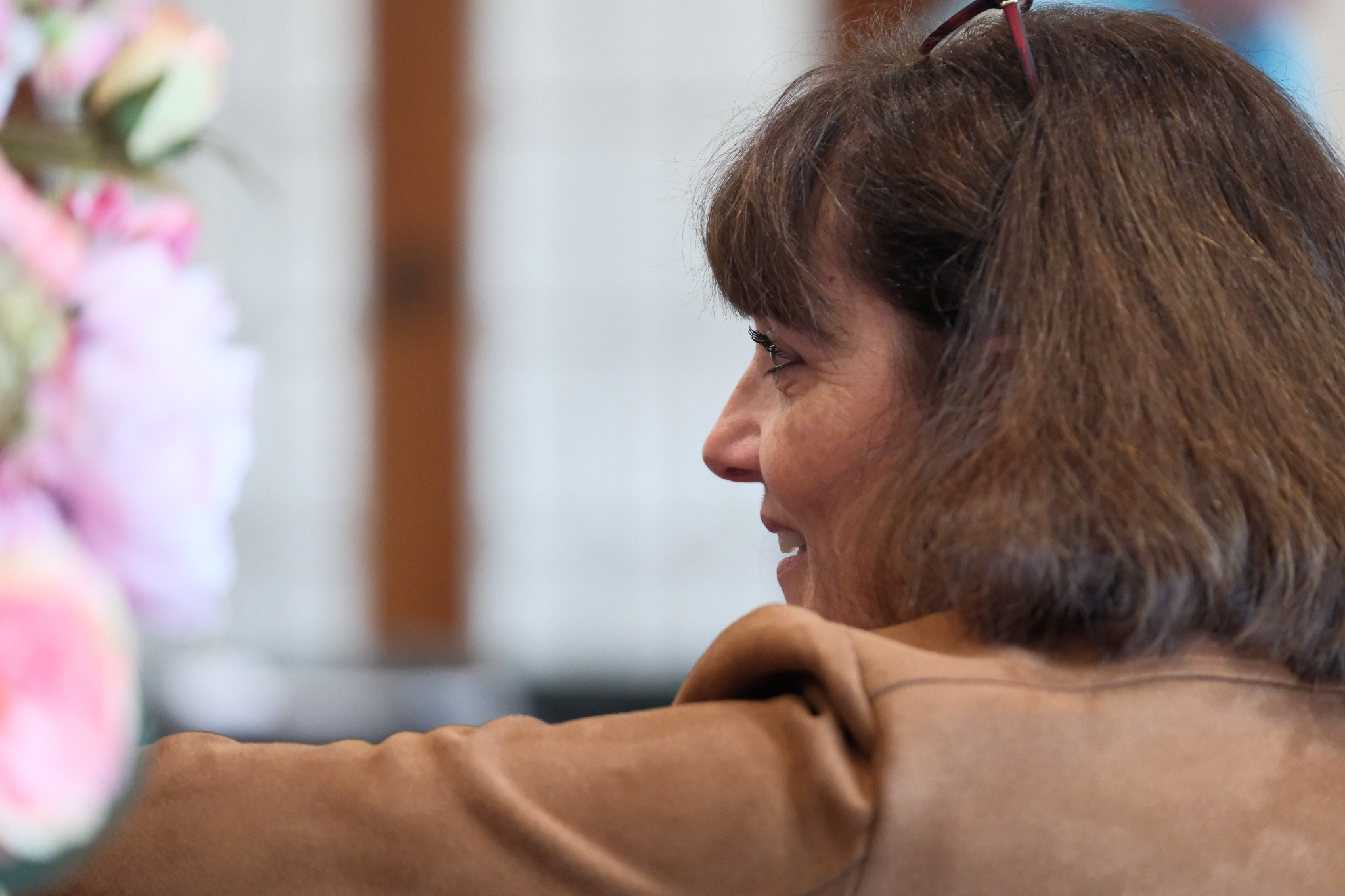 Le vendredi 7 novembre 2025, Valérie Caussé, épouse de Gérald Caussé, du Collège des douze apôtres, participe à la rencontre avec les médias qui a lieu dans le Joseph Smith Memorial Building. 2025 par Intellectual Reserve, Inc. Tous droits réservés.