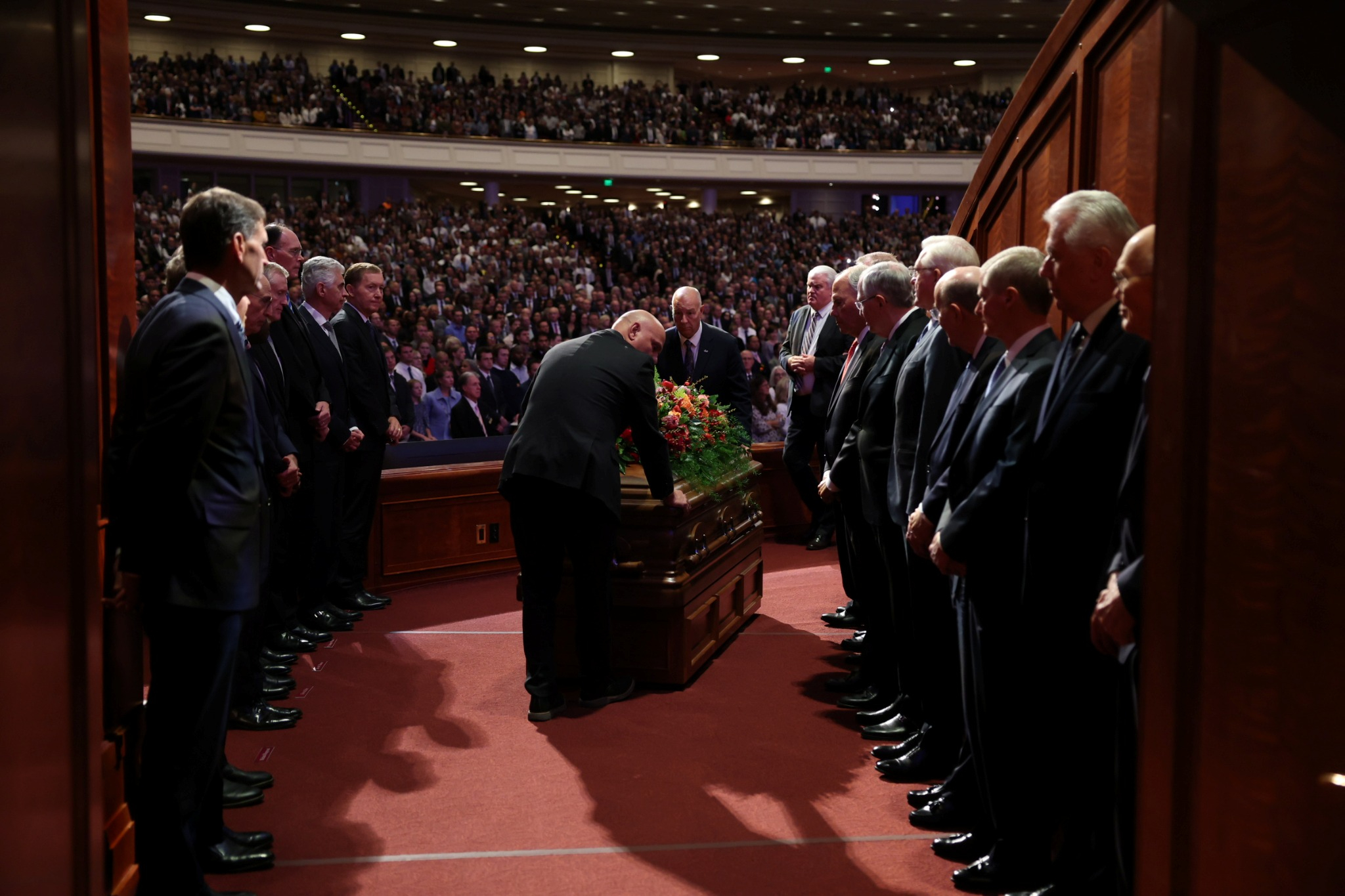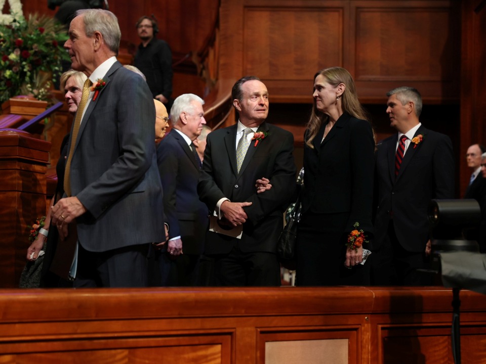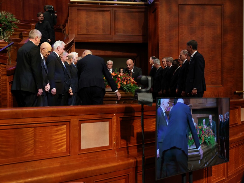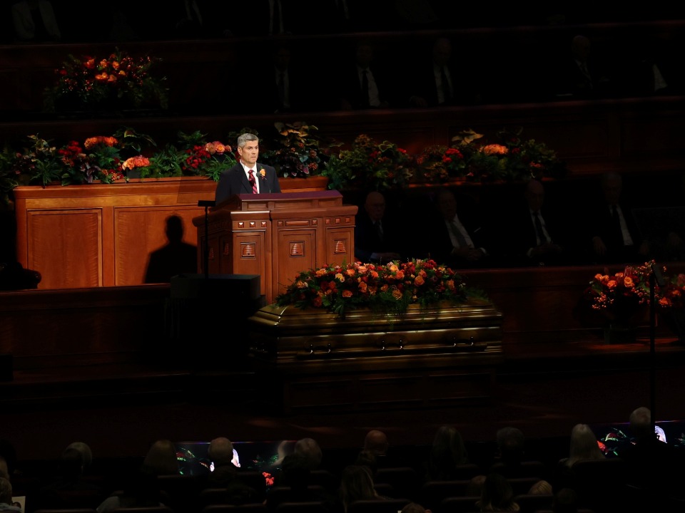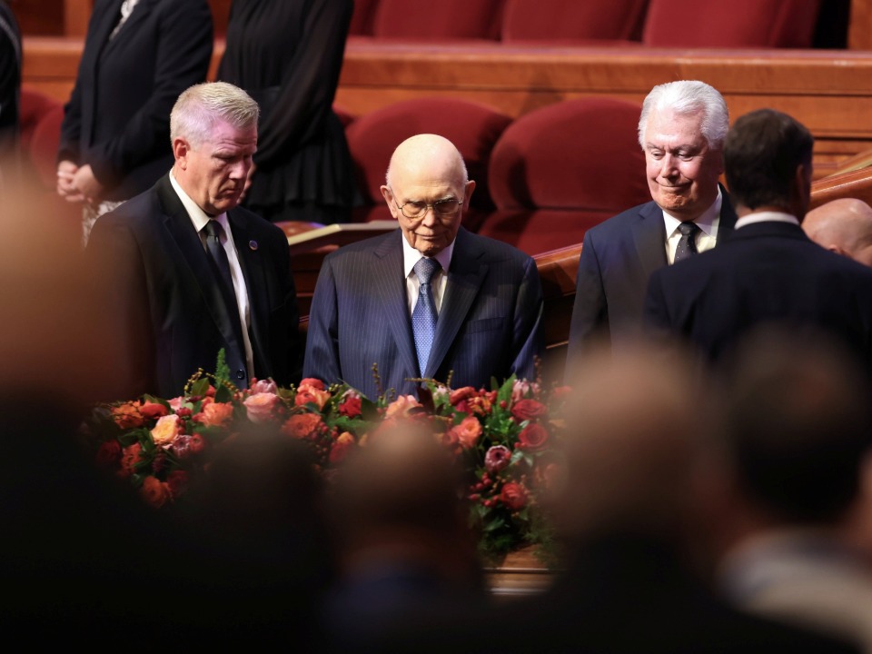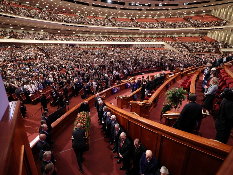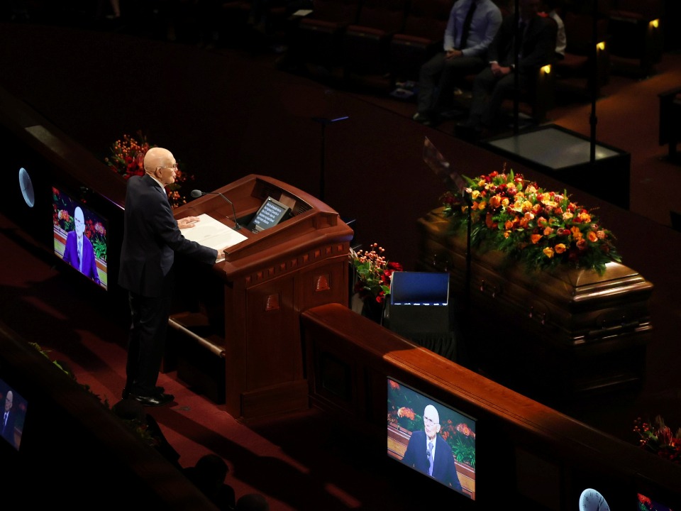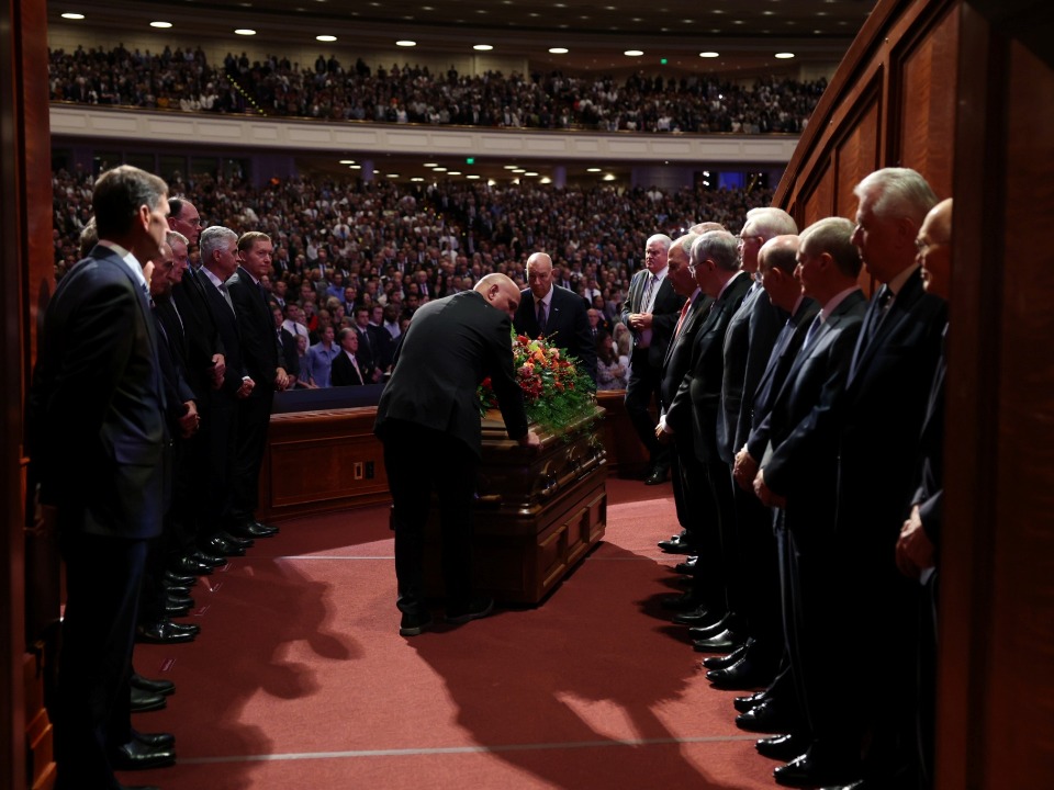 Lors des obsèques organisées au centre de conférence de Temple Square, quatre dirigeants de l’Église de Jésus-Christ des Saints des Derniers Jours se sont joints à deux des enfants du prophète pour lui rendre hommage.
