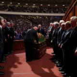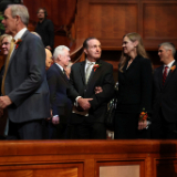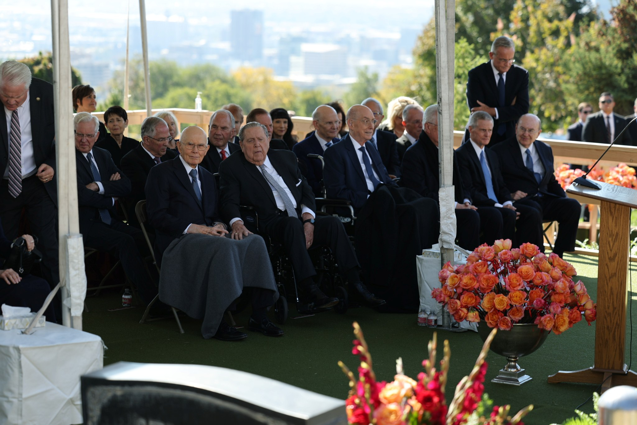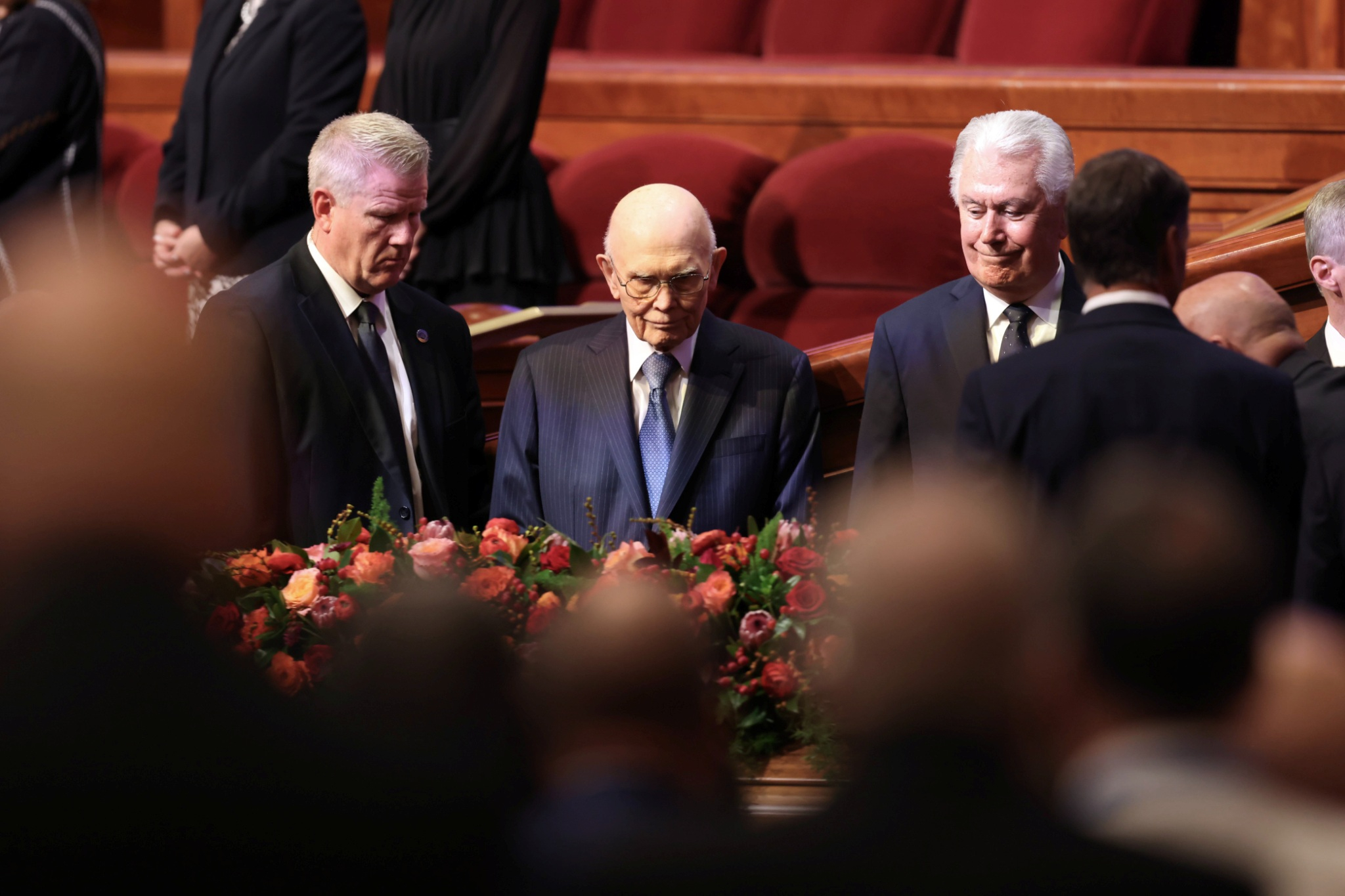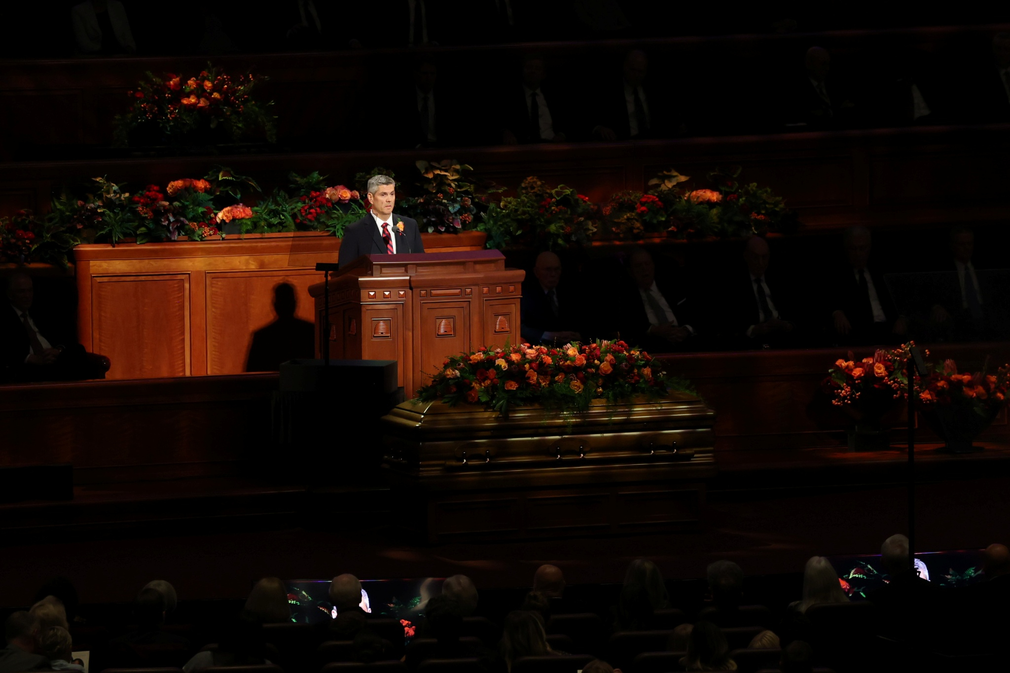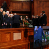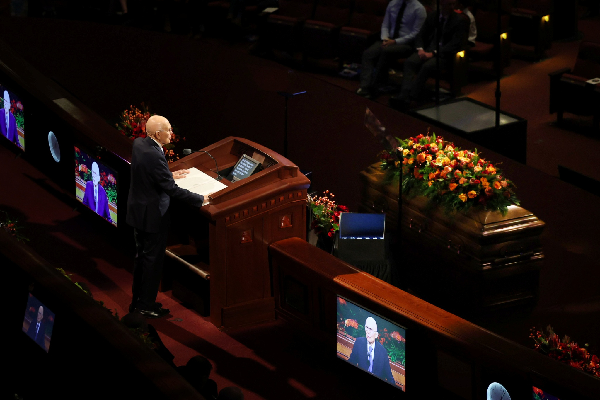 Lors des obsèques organisées au centre de conférence de Temple Square, quatre dirigeants de l’Église de Jésus-Christ des Saints des Derniers Jours se sont joints à deux des enfants du prophète pour lui rendre hommage.