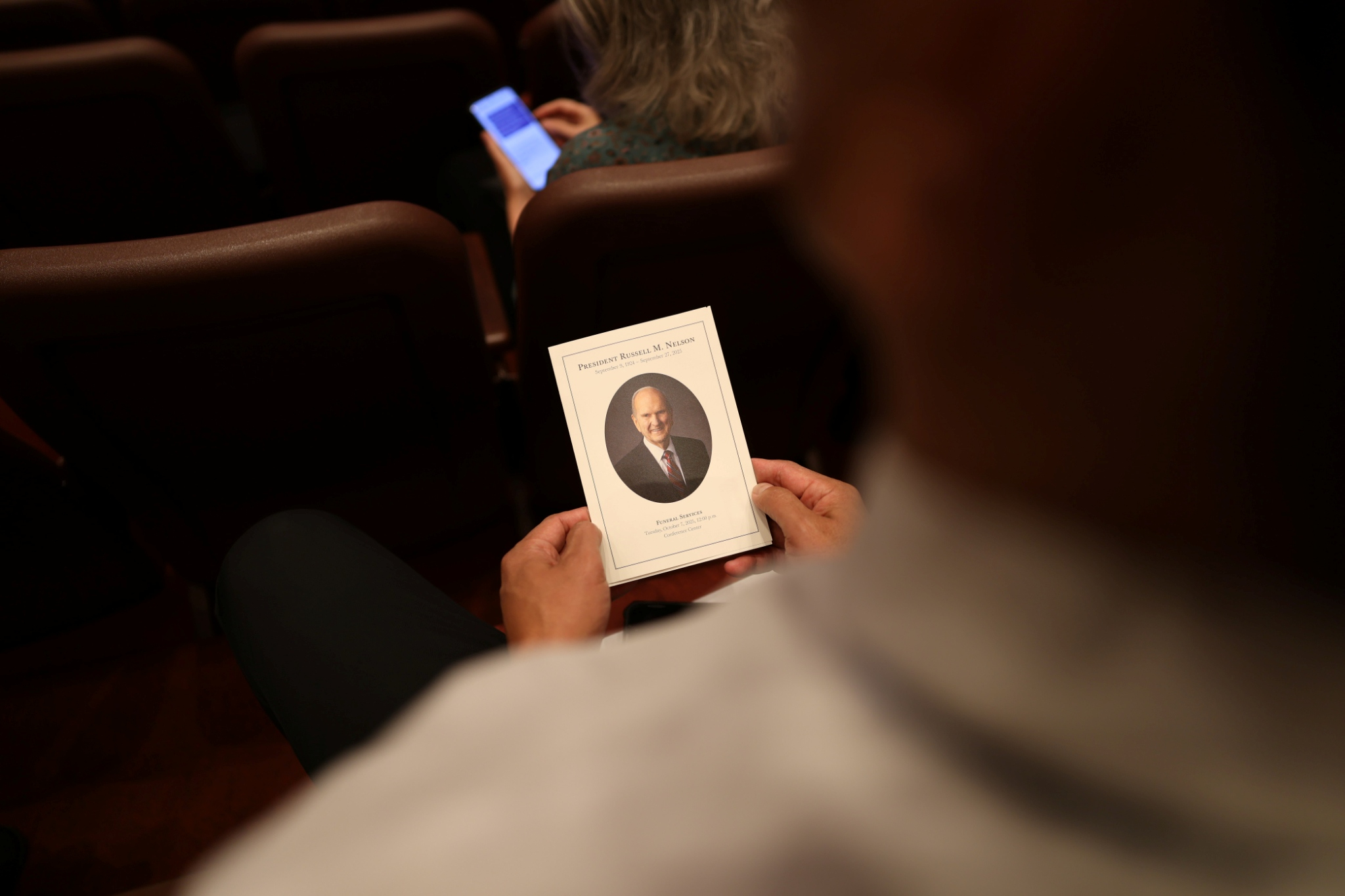 Frère Oaks et frère Eyring, qui ont servi comme conseillers du président Nelson, étaient aux côtés de deux de ses dix enfants : sa fille Laurie N. Marsh et son fils Russell M. Nelson, fils, ainsi que de Jeffrey R. Holland, du Collège des douze apôtres, et de Camille N. Johnson, présidente générale de la Société de Secours, pour rendre hommage à la vie et aux enseignements du prophète. Le Chœur du Tabernacle de Temple Square a interprété plusieurs chants, notamment « Nous te prions, ô notre Père », écrit par le président Nelson lui-même.