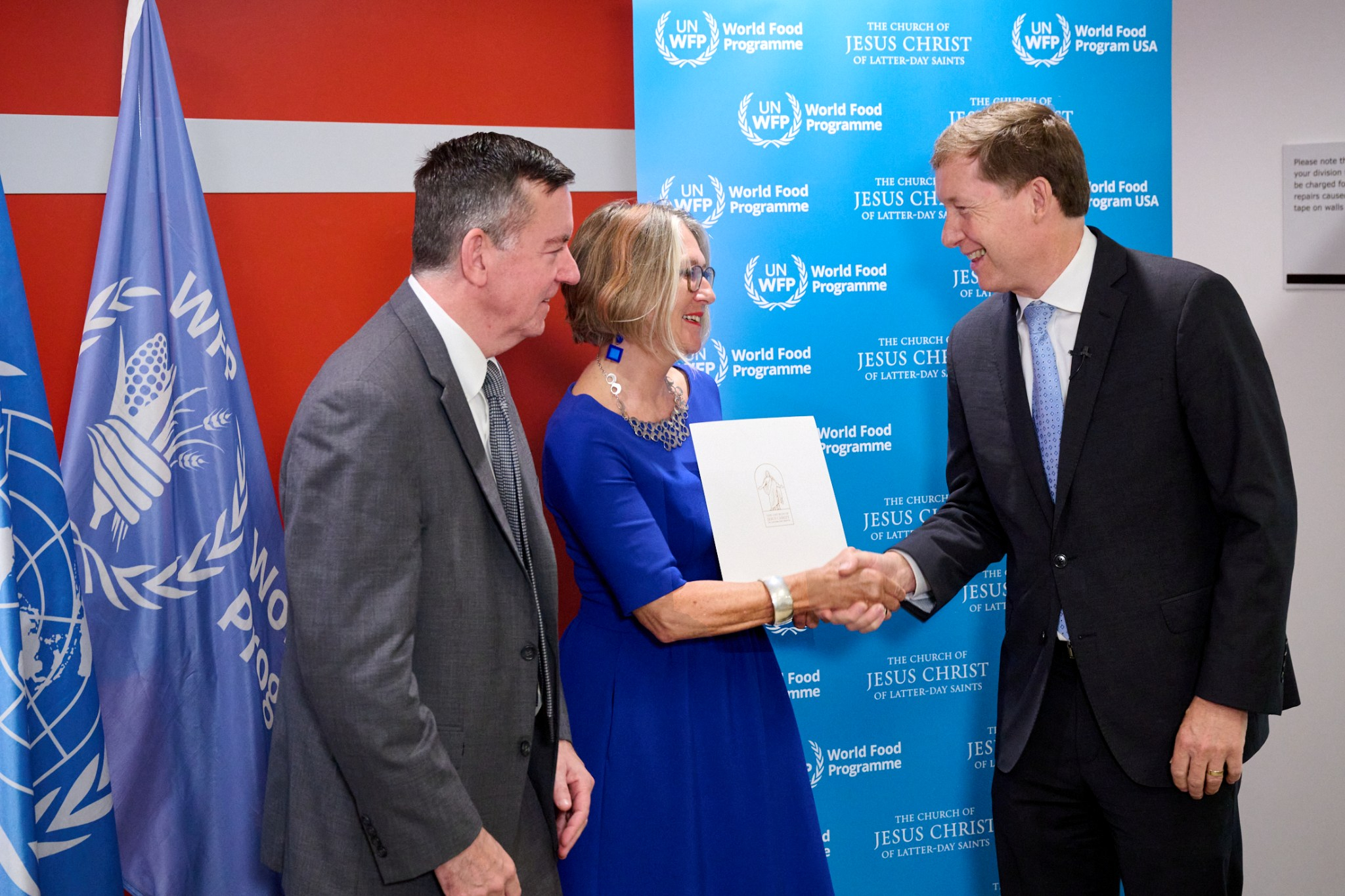 Frère Budge a déclaré : « Nous sommes profondément reconnaissants de collaborer avec le Programme alimentaire mondial, car nous savons qu’ils apporteront de la nourriture à ceux qui en ont le plus besoin. Nous remercions également les membres de l’Église et nos amis dans la foi dont les sacrifices financiers ont rendu ce don possible. Ces dons apportent aux enfants de Dieu un peu plus de bonheur, et à nous tous un peu plus de sainteté de cœur. »