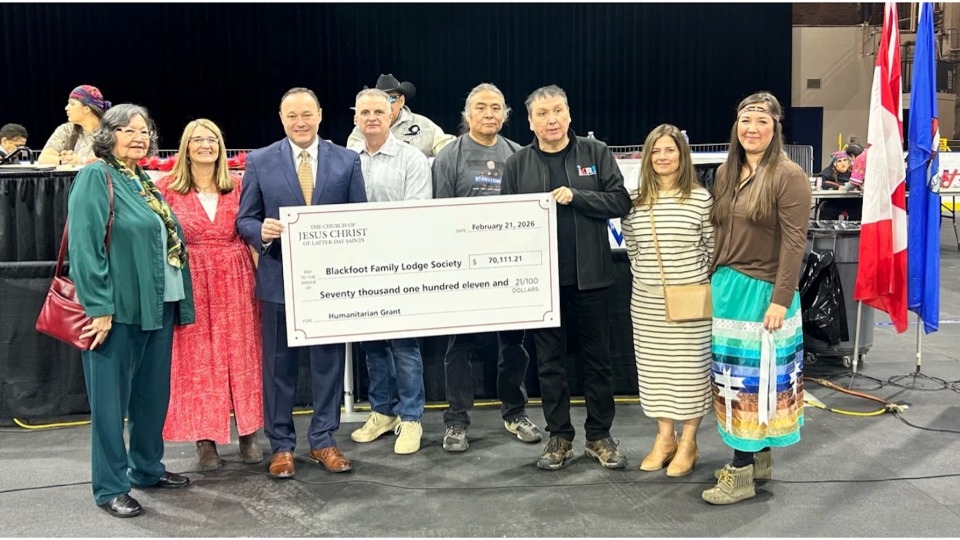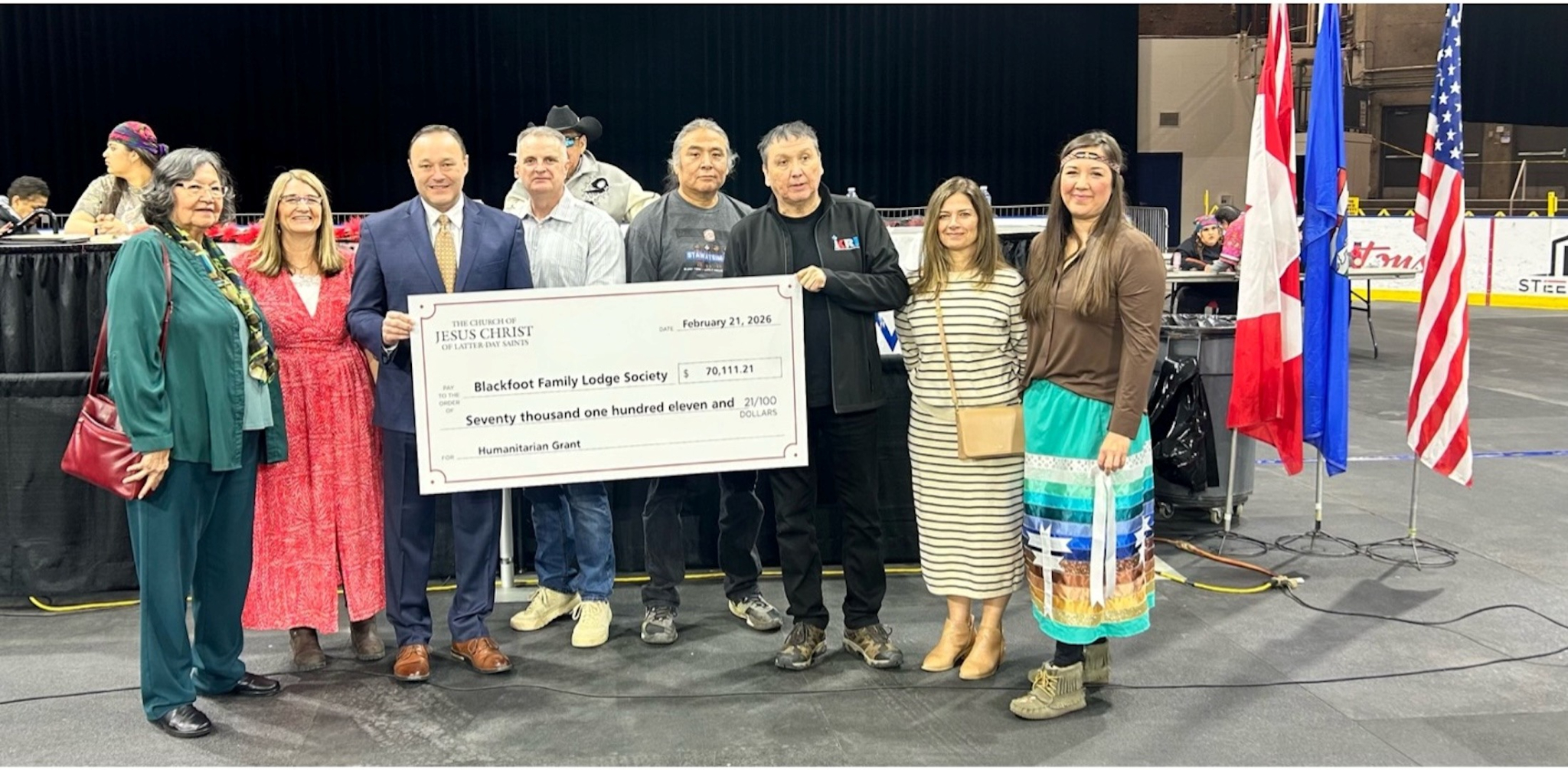 Lors de la récente cérémonie d’ouverture du pow-wow international pour la paix à Lethbridge, en Alberta, l’Église de Jésus-Christ des Saints des Derniers Jours a remis un don, dans le cadre de son aide humanitaire, à la Blackfoot Family Lodge Society (BFLS) afin de soutenir son programme Soaring Hearts. Cette contribution de 70 111 dollars canadiens (50 000 dollars américains) permettra d’aménager 16 appartements de transition de deux chambres pour les femmes et les enfants autochtones qui quittent les réserves pour s’installer en milieu urbain.
