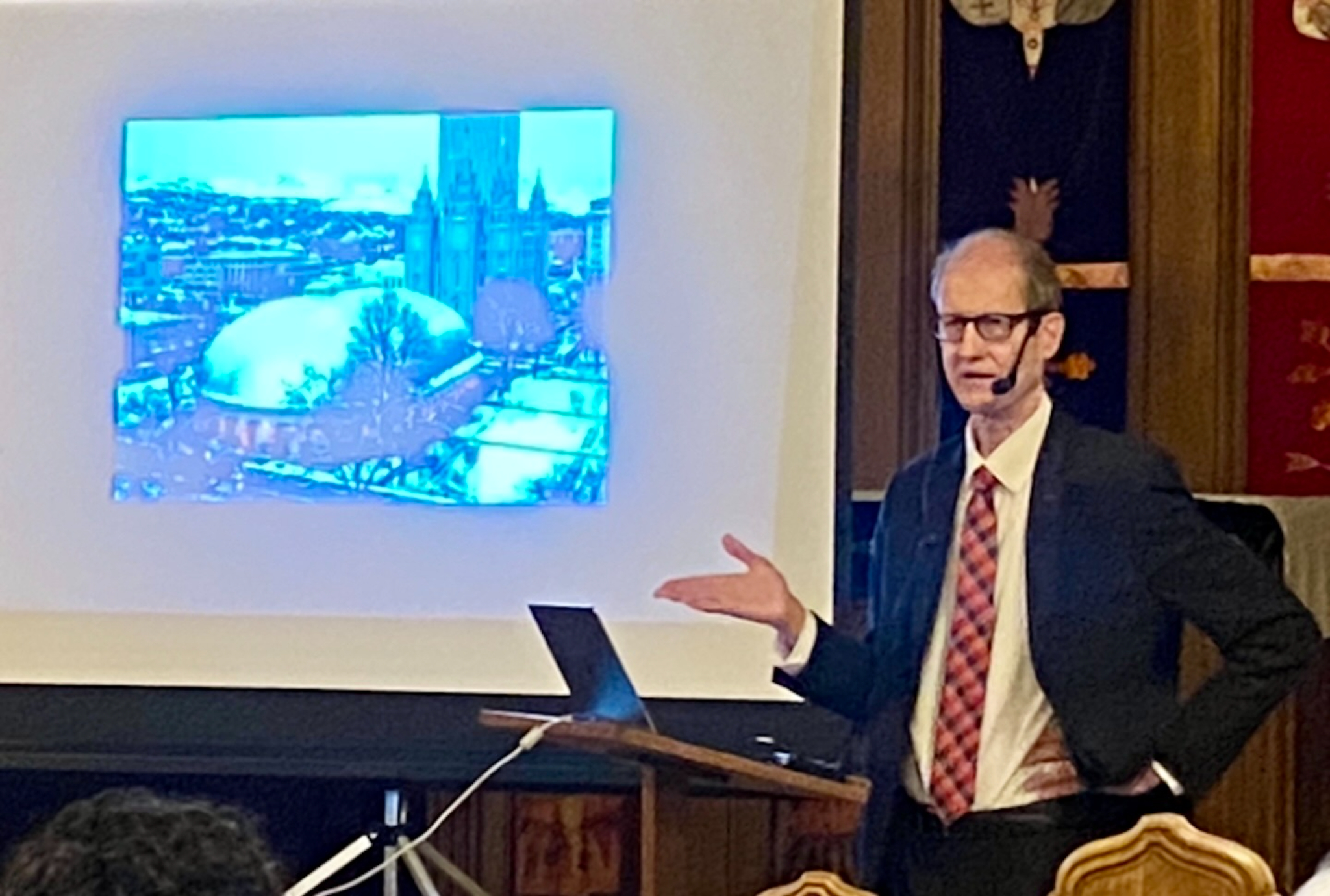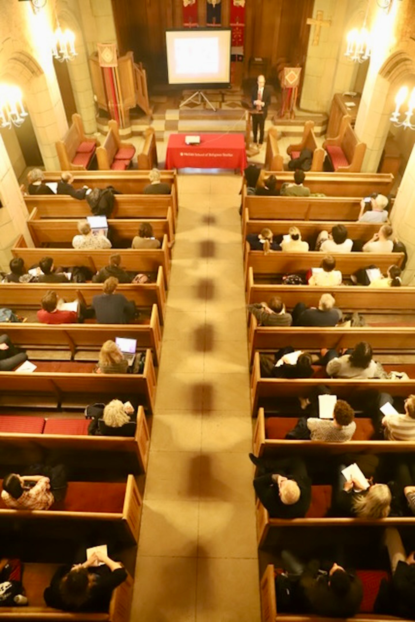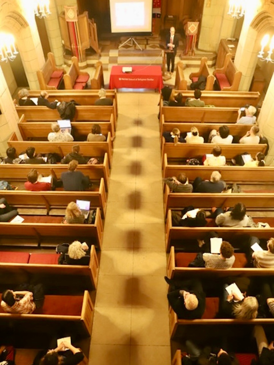 Le 20 novembre 2025, l’École d’études religieuses de l’Université McGill accueillait John Durham Peters, spécialiste des médias, dans le cadre de la 11e conférence annuelle des saints des derniers jours. Le professeur Peters s’est adressé à une soixantaine d’étudiants et étudiantes et de membres du personnel à la chapelle patrimoniale Birks. Son allocution, intitulée « La rédemption des morts : conséquences morales des médias numériques » explorait la manière dont la technologie façonne l’éthique et abordait la notion de rédemption à l’ère des registres numériques permanents.